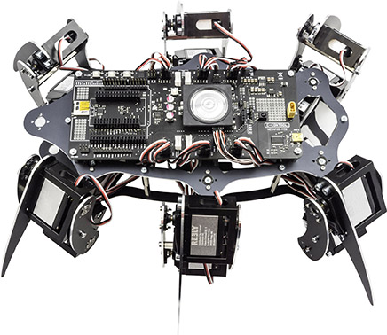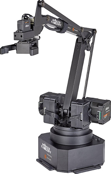 Robot spider, Raspberry Pi as classroom set, robotic arm (from top to bottom). The MAKERFACTORY brand offers product diversity for makers, educators and developers
