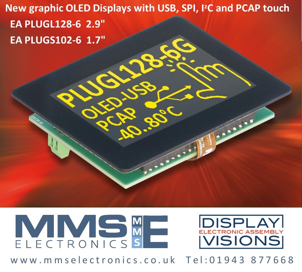 Also on show at the virtual exhibition is the versatile range of Chip-on-Glass, high contrast LCD and OLED displays. MMS Electronics Ltd now stocks four sizes of the COG OLED displays with SPI and I²C interface. The EA OLEDM204 is an alphanumeric display that functions as a 4×20, 3×20 or 2×20 display.
