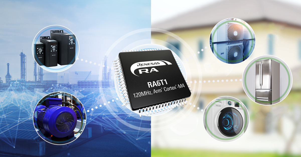 The RA6T1 is the first RA microcontroller from Renesas to combine motor-control peripherals with a 120MHz Arm® Cortex®-M4 core to control two BLDC motors simultaneously with one chip. The high integration of motor-control peripherals enables the RA61T1 to halve the Bill of Materials (BoM).
